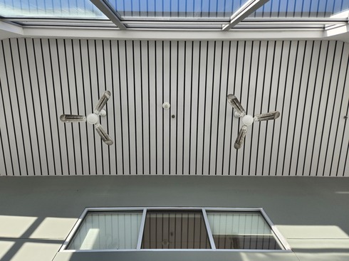 A picture of ceiling fans that don't look like they've been cleaned since this place opened and are exceptionally filthy. They're positioned right over the entrance/exit so everyone feels the dust at some point whether their coming or going.